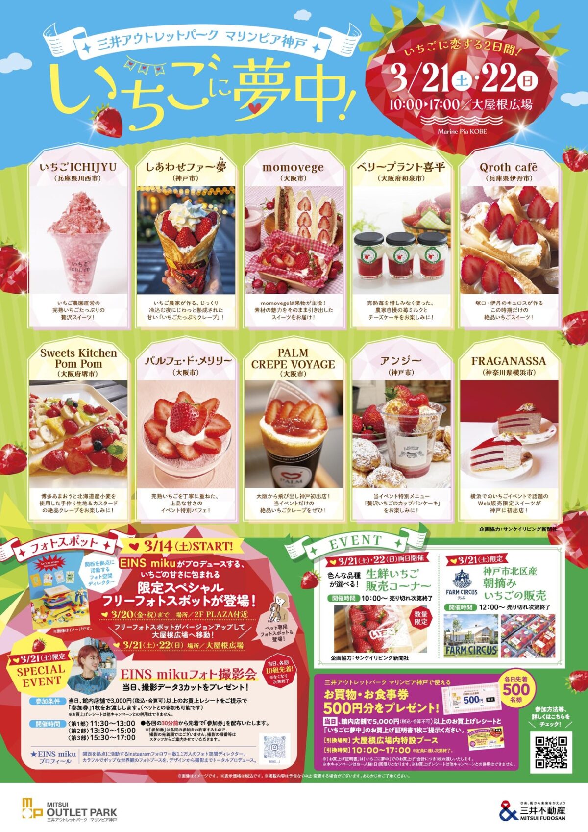 垂水区にある「三井アウトレットパーク マリンピア神戸」に『いちごスイーツ』を楽しめるショップ10店が2日間限定で出店します。