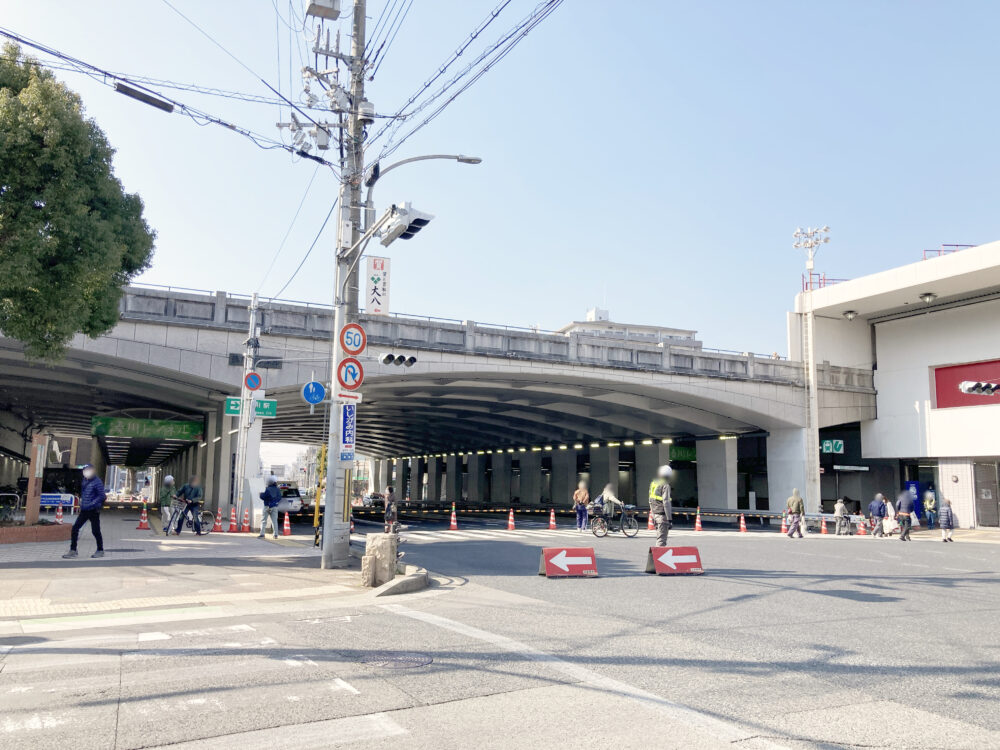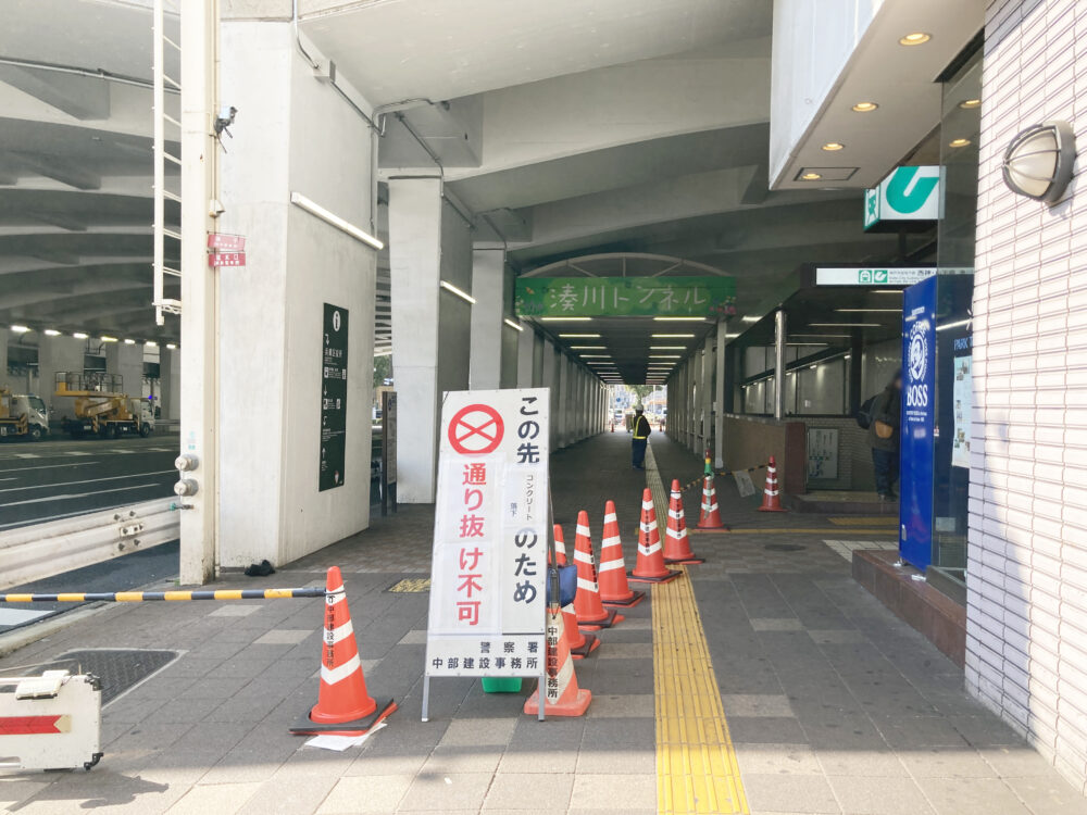 トンネルの下にある「地下鉄の入口」は引き続き利用できる形になっています。歩行者は、地下を通っての迂回も選択肢としてアリかもしれません。