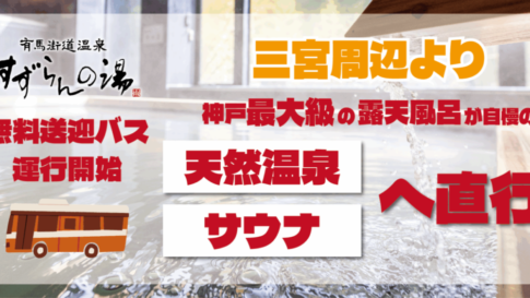 谷上・神戸北町・北鈴蘭台駅・鈴蘭台など北区内のスポットだけでなく、三宮の3つのスポットから「無料送迎バス」も出ていて、約20分ほどで結びます。