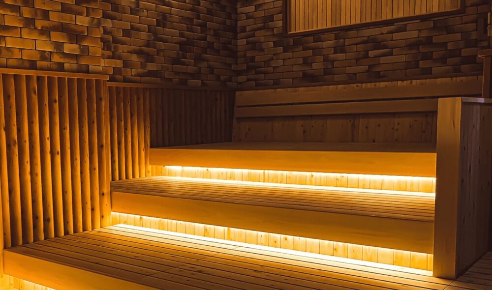 レディスフロアには天然木に囲まれた「ドライサウナ」と、モロッコ直輸入のバラのエッセンシャルオイルを使った「ローズテルマリウム」、メンズフロアには、本場フィンランドから取り寄せたケロ材で作ったサウナ小屋がある「フィンランドサウナ」や、「塩サウナ」など。