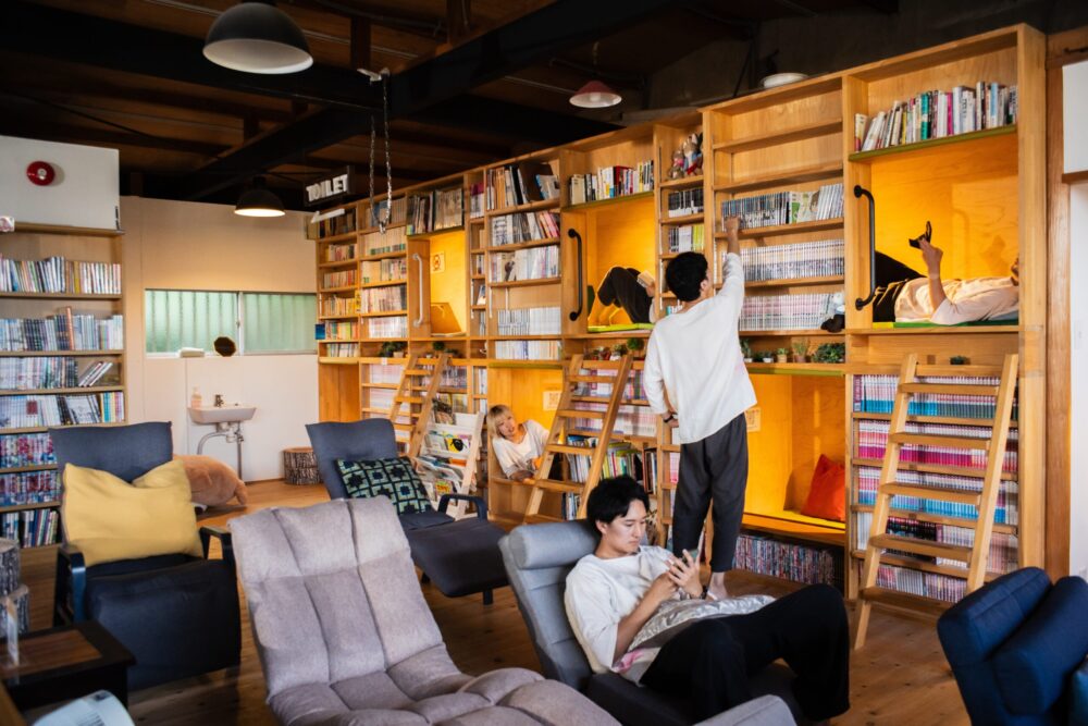 館内には、7,000冊の漫画が並ぶ「温泉図書館 喫泉(きっせん)」も。おこもりスペースや、ふかふかのソファでドリンク片手に読書が楽しめます。
