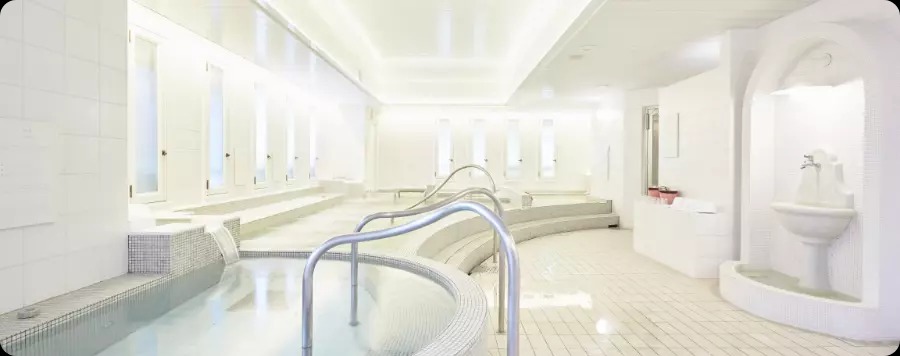 サウナは、約90度の「遠赤外線サウナ」と、約85度の「塩サウナ」の2種類。温めた天然石や岩石のベッドに横になって汗をかく「岩盤浴」もあります。