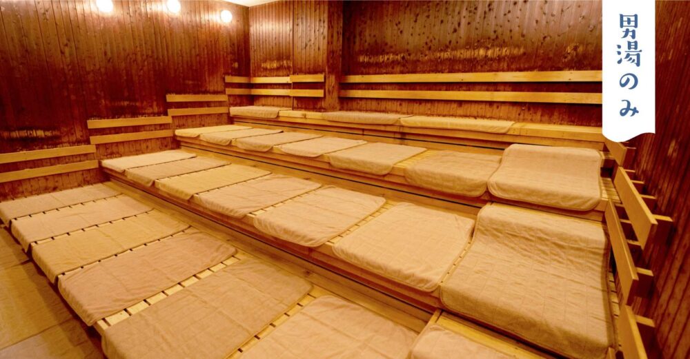 サウナも充実していて、男湯には遠赤外線ヒーターを使用した高温の「六甲サウナ」と、天然石を用いた「ロッキーサウナ」、女湯にはお肌のケアや美容目的におすすめな「ソルティサウナ」と30分ごとにオートロウリュが行われる「フィンランドサウナ」があります。