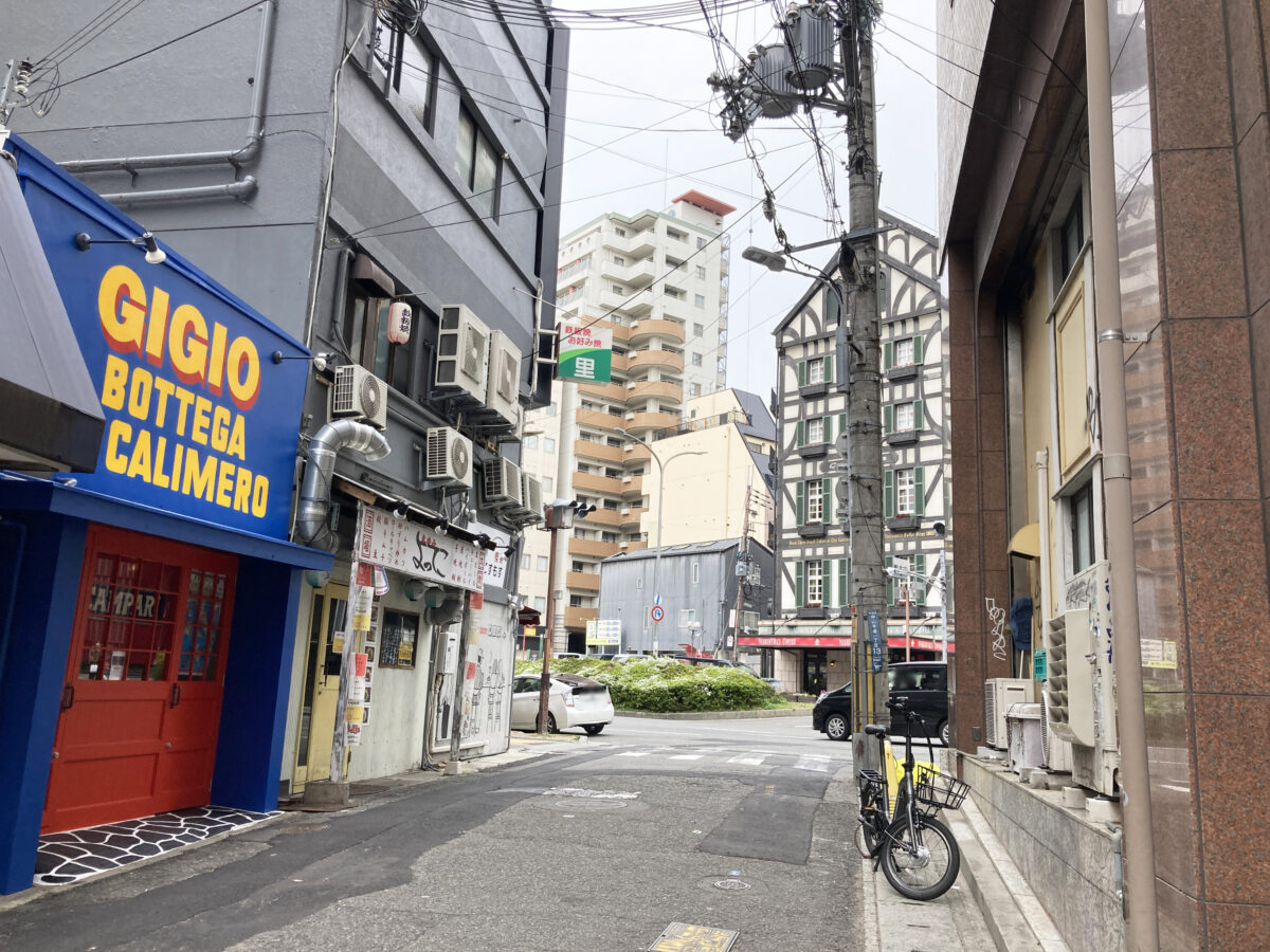 『ボッテガ ジージョ』の場所は、東門筋の1本東の通りで、山側を向くとすぐ山手幹線という場所。