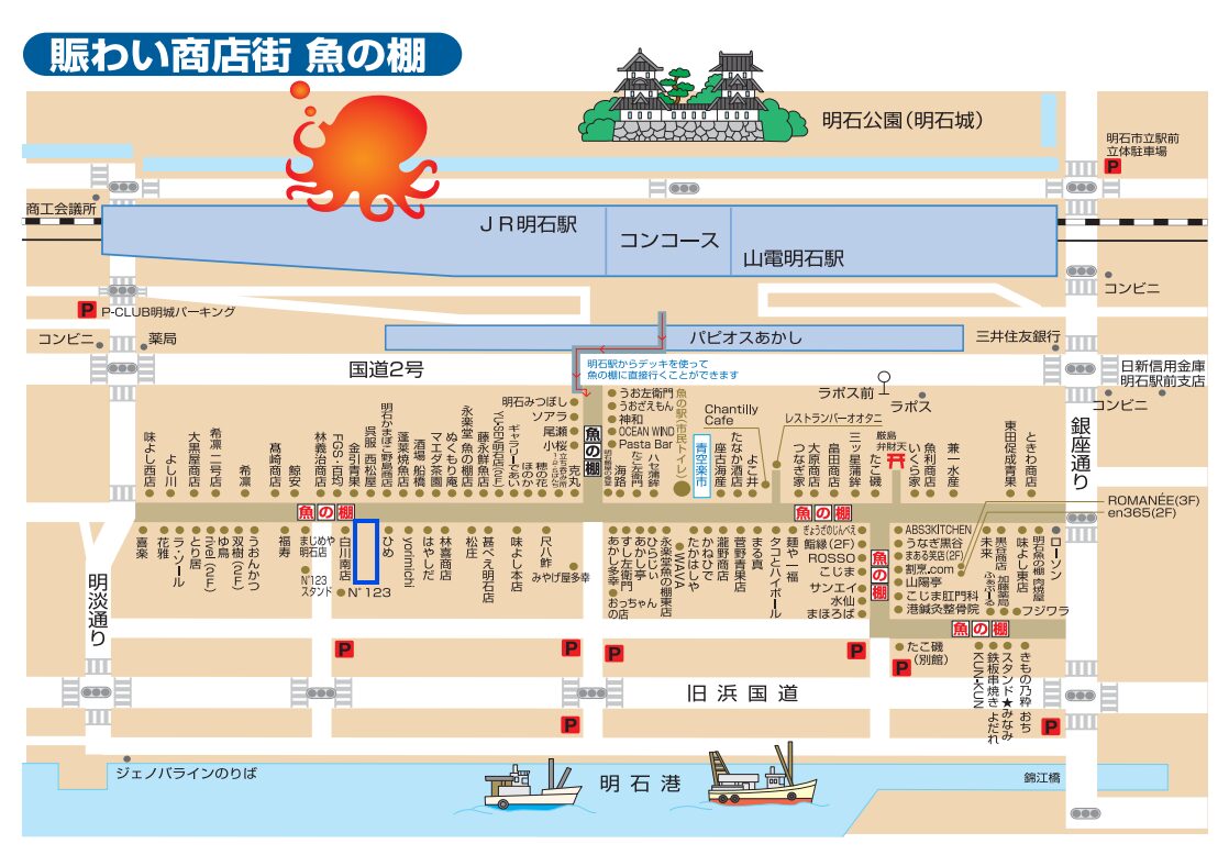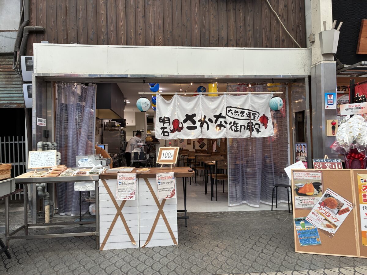各線 明石駅から歩いて7分、魚の棚商店街の中に『明石さかな御殿』ってお店ができてます。