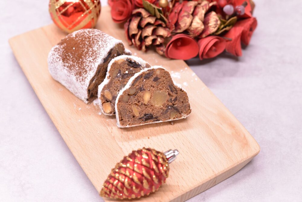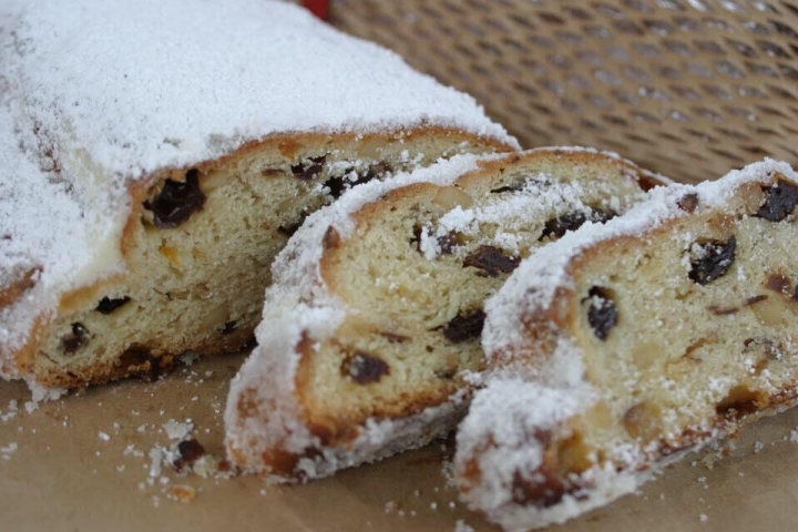 その形は純白のマントでくるまれた幼子イエスに由来していると言われ、クリスマスを待つ4週間のアドベント(待降節) の期間に少しずつスライスして食べる習慣があるのだそう。