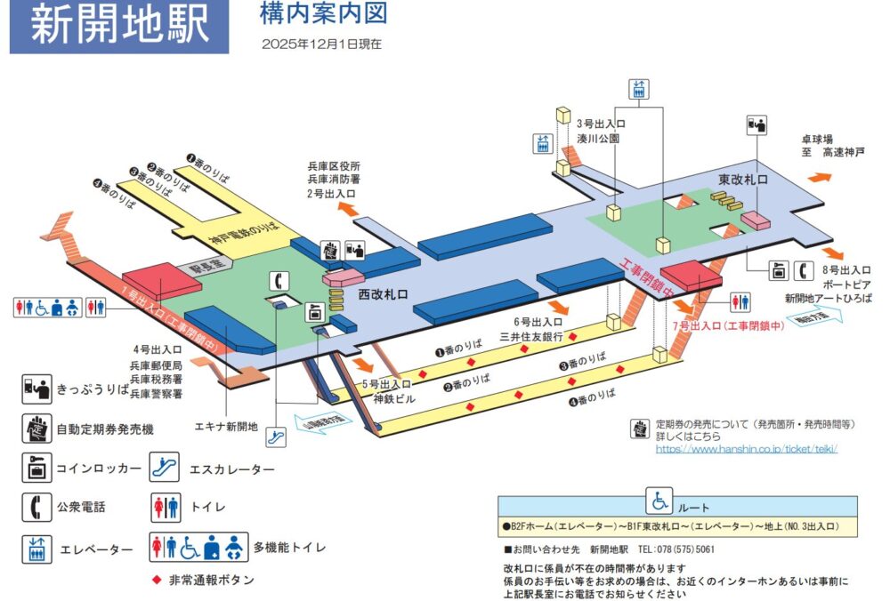 ちなみに、工事によって新開地駅の「1号出入口」が閉鎖されています。