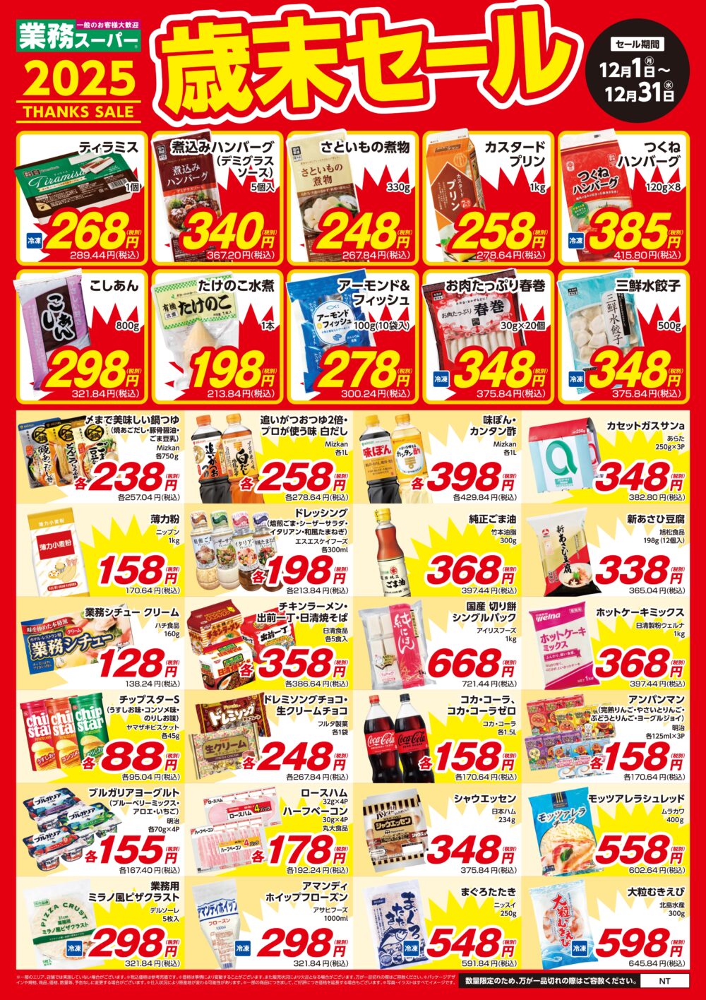 全国の業務スーパーで、1か月限定の「歳末セール」が開催されてます。