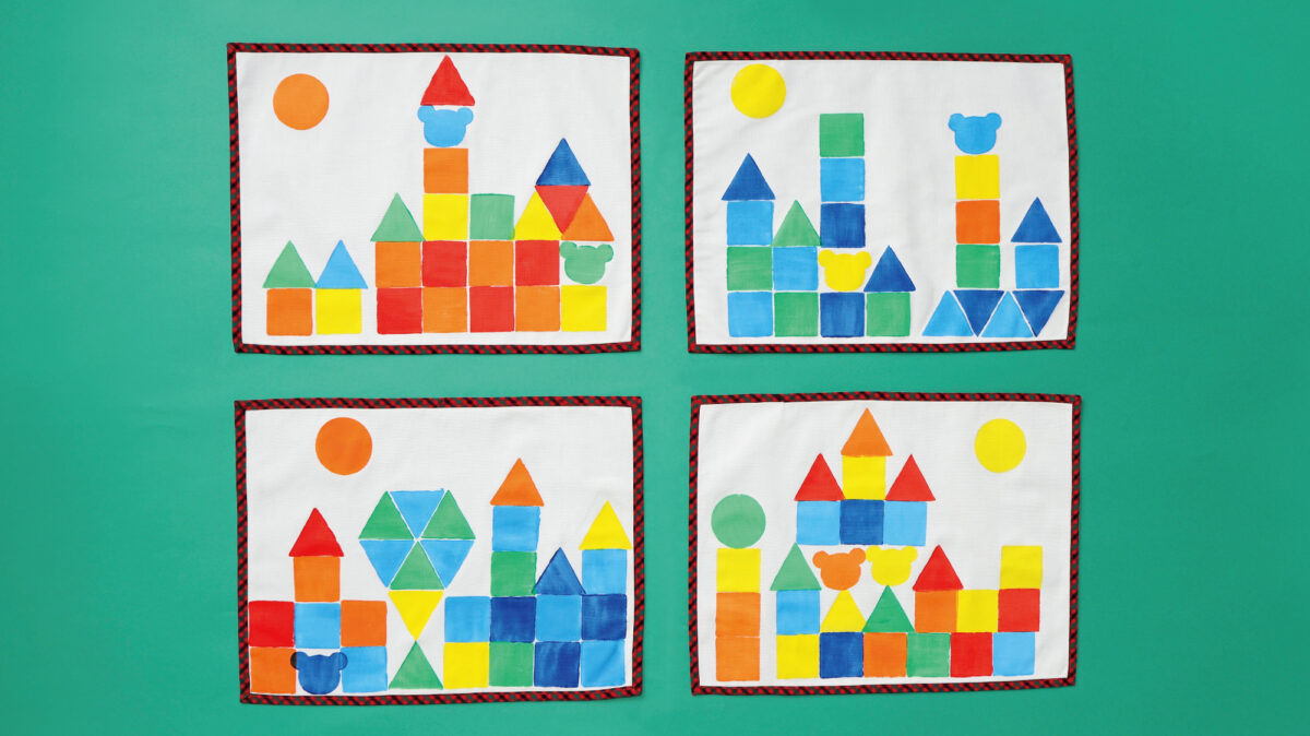 食卓を彩るカラフルなランチョンマットを作れます。クマちゃんや〇△□のスタンプを使って、色と形の組み合わせを楽しめそうです。