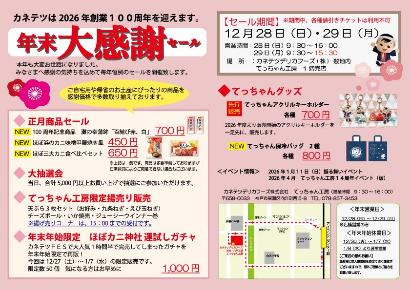 お正月商品も「お得」に。カネテツの『年末大感謝セール』が開催されるみたい。抽選会・運試しも