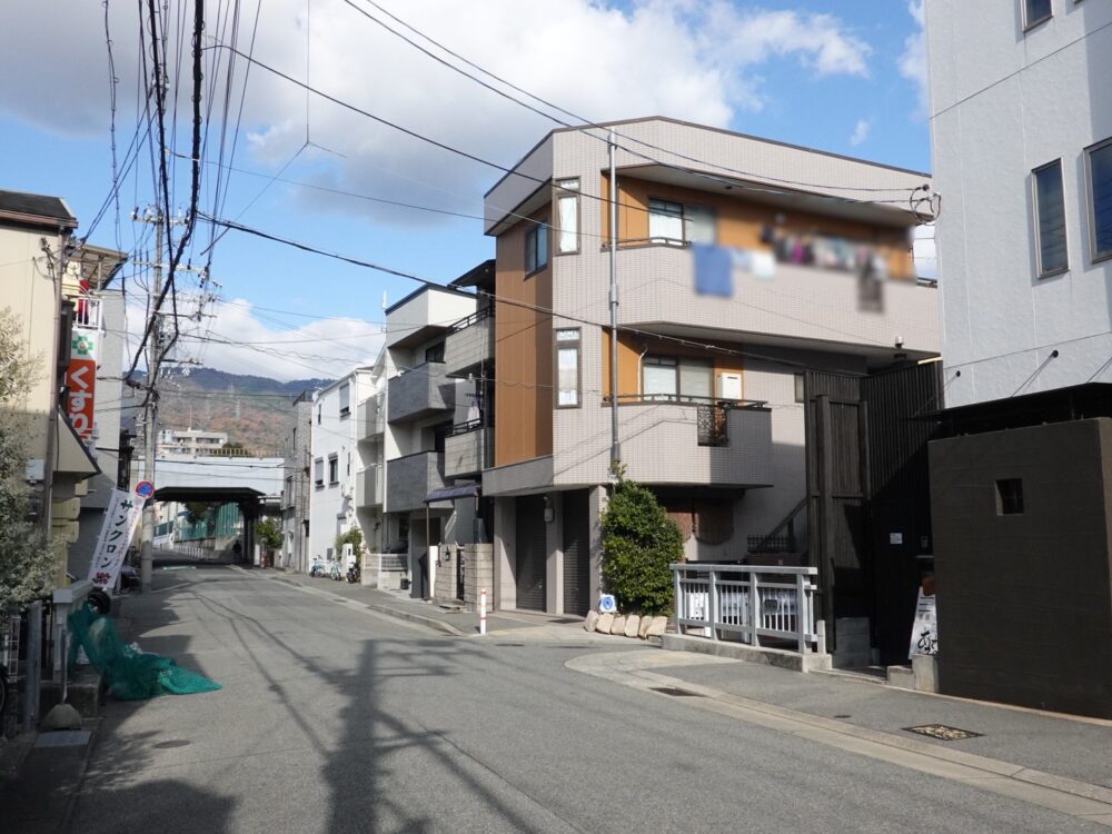 反対側を向くとこんな感じ。近くには、「セブン-イレブン 神戸御影石町2丁目店」や、「SYOKUDOU HIROSE」があるあたり。