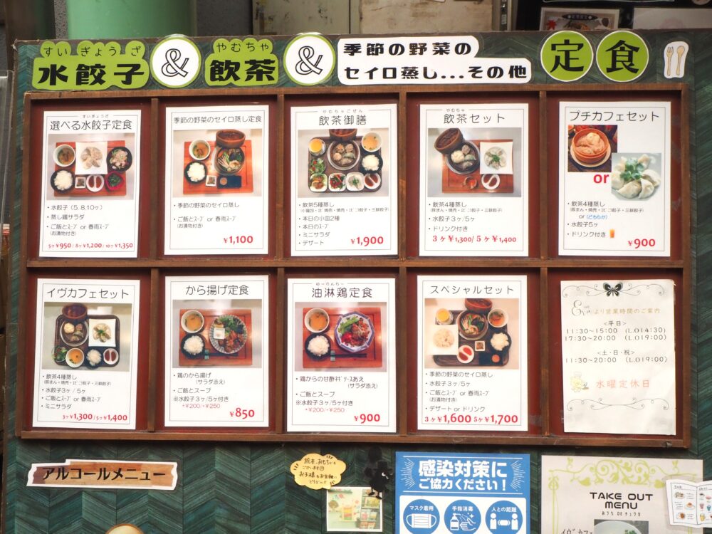 お店は階段を少し上った先にあります。カフェでありながら、「自家製水餃子」を楽しめるのが特徴です。