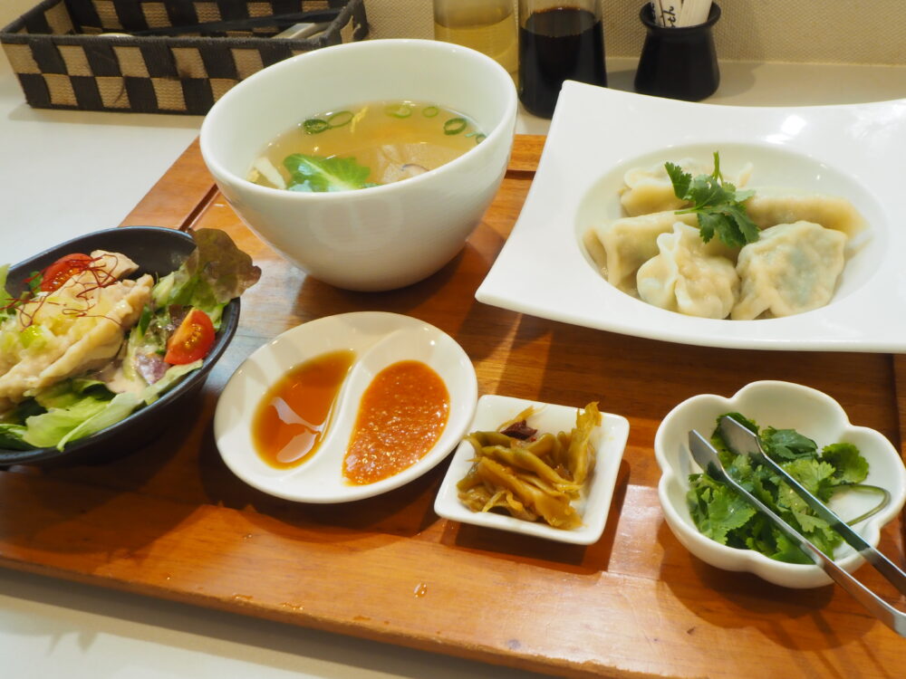 自家製水餃子が楽しめる「選べる水餃子定食」は水餃子の数を5個、8個、10個から選べます。今回は5個(950円)をチョイス。主食は春雨スープで。