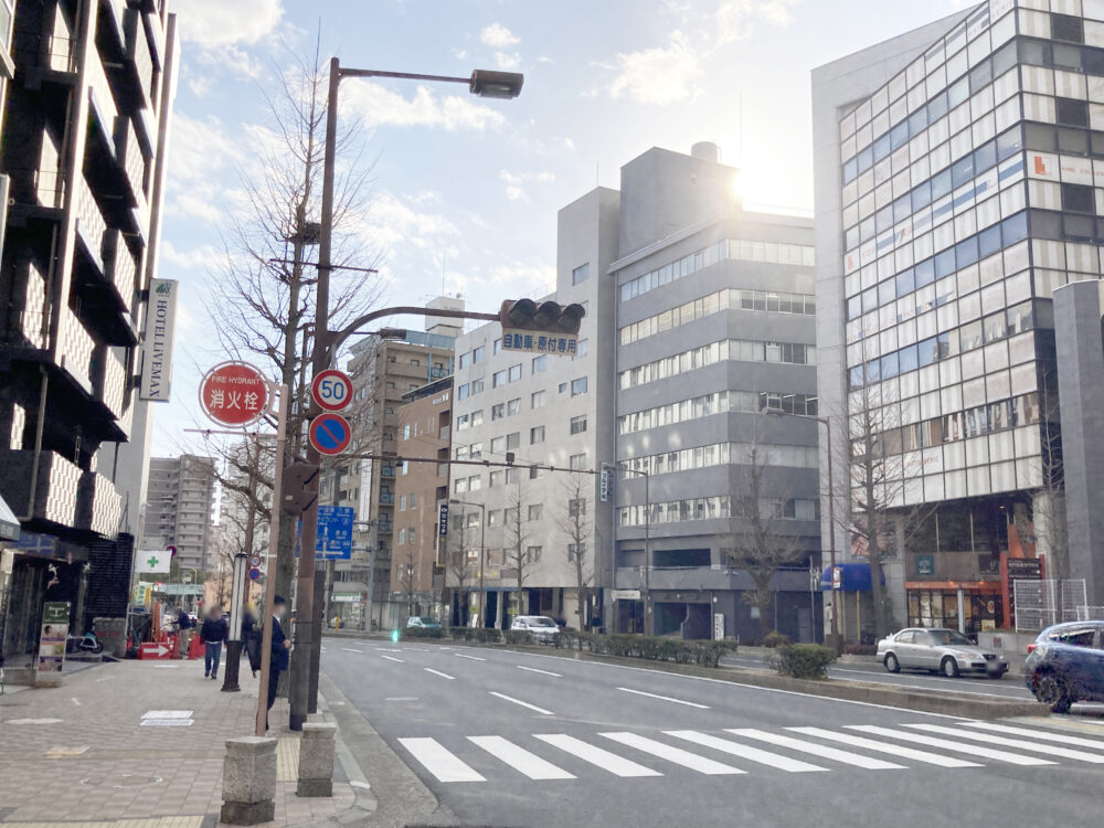 南を向くと「加納町歩道橋」がある山手幹線との交差点があります。『アパホテル』が、リゾートな設備を備えた「大型ホテル」を計画している場所の近くです。