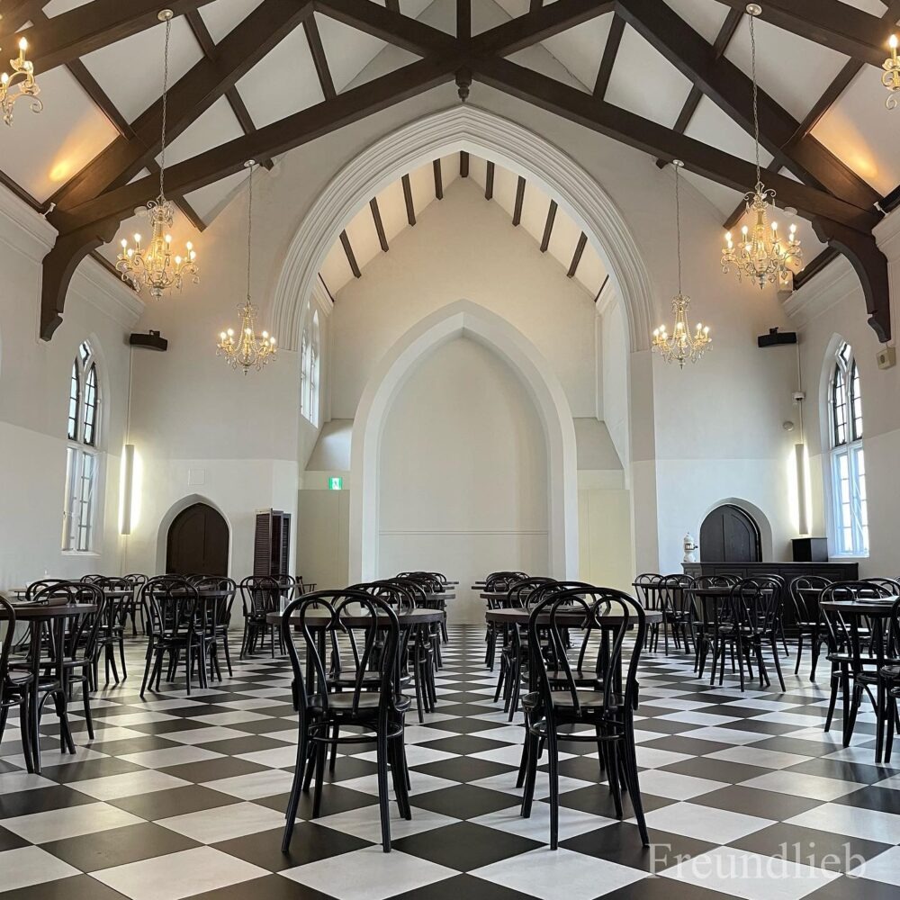 各線三宮駅から歩いて10分のところにある『フロインドリーブ』は、1924年創業、100年以上も続く教会をリノベーションしたカフェ。