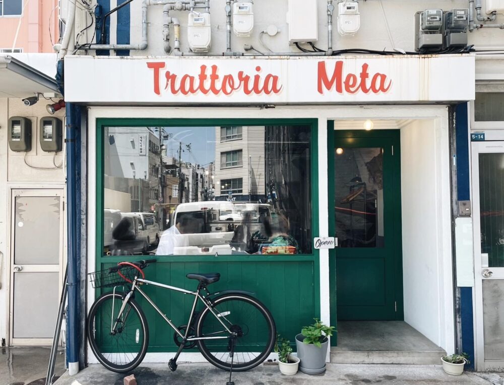 各線 元町駅から西へ5分、静かな路地にポツンとある『Trattoria Meta』は、ナポリを中心とした南イタリア料理が楽しめるお店です。