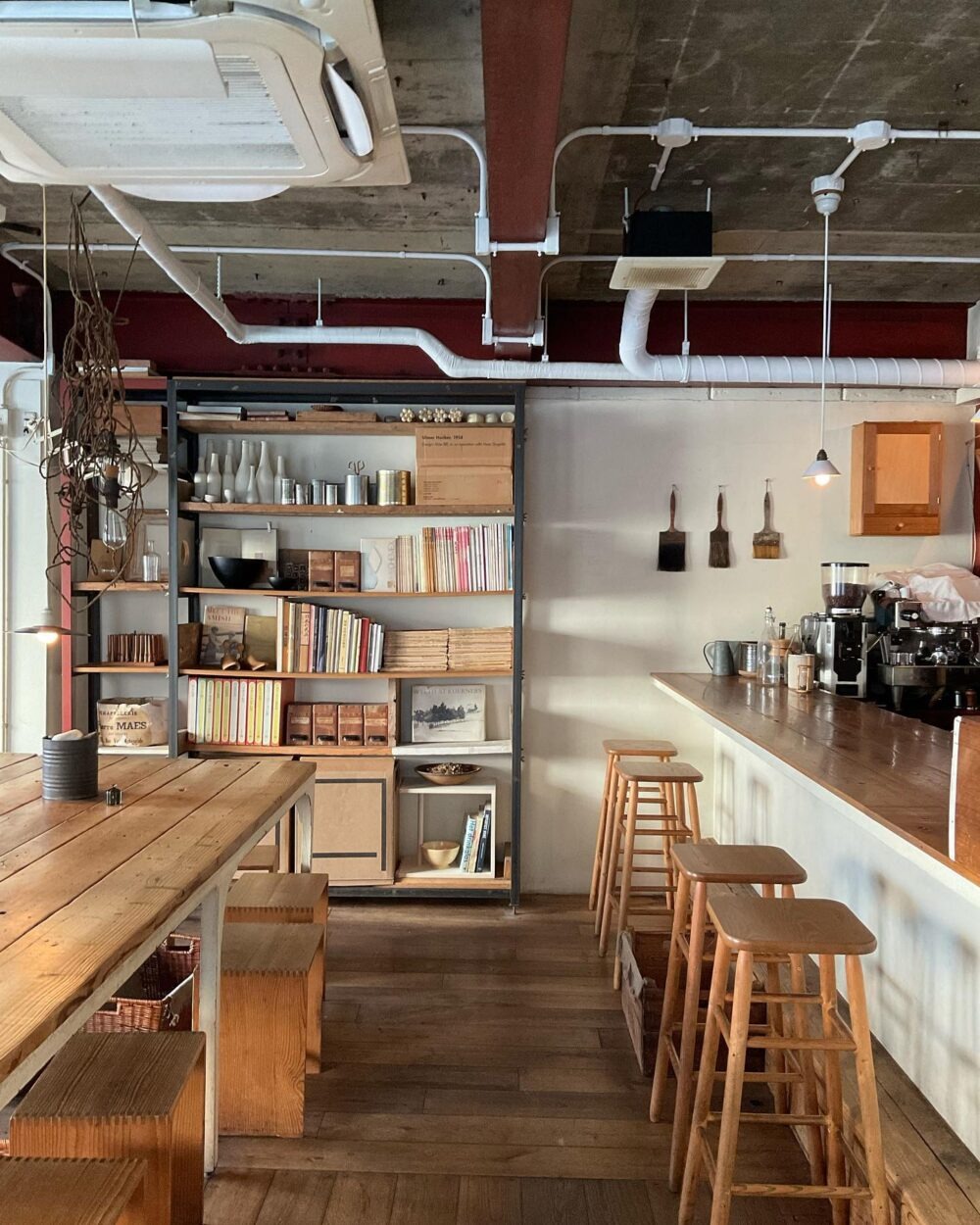 一歩足を踏み入れると、大きなカウンターと数席のテーブル席が設けられています。白壁と無垢なウッド調のテーブル・椅子で、ナチュラルで気取らない雰囲気が魅力的です。