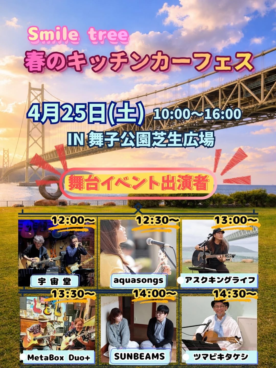 イベントは昨年秋にも開催されていて、大好評だったそうですよ。明石海峡大橋を望む公園で、グルメやステージをぜひ。