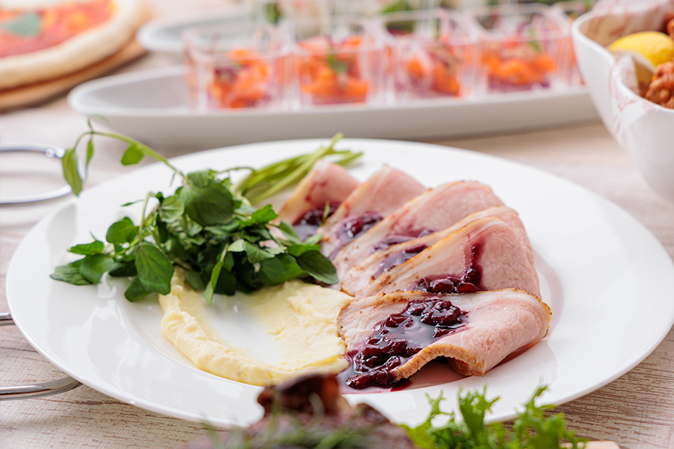 お肉メニューには、甘酸っぱいベリーソースがよく合う「ローストポーク」もあります。