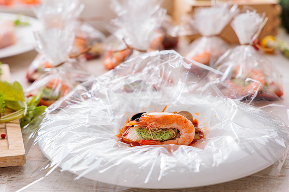 魚介料理は、海老やあさりなどの風味が広がる「シーフードのフィルム包み」や、「バジル風味の鯛のカルパッチョ」などが登場。