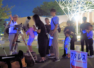 星空や宇宙の楽しみ方を教えてくれる「星のソムリエ(星空案内人の愛称)」のガイドのもと、天体望遠鏡で夜空を眺めようというイベントです。