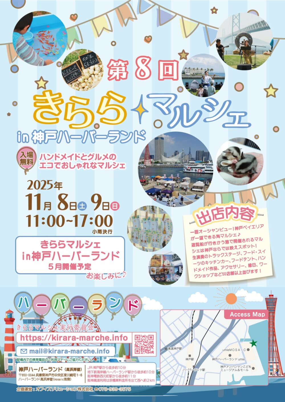 グルメ・雑貨・生演奏などが楽しめる『きららマルシェ』が開催されるみたい。ハーバーランドに50店舗以上が集結