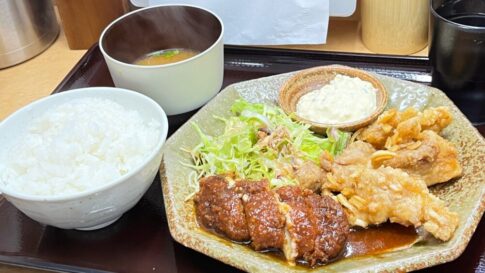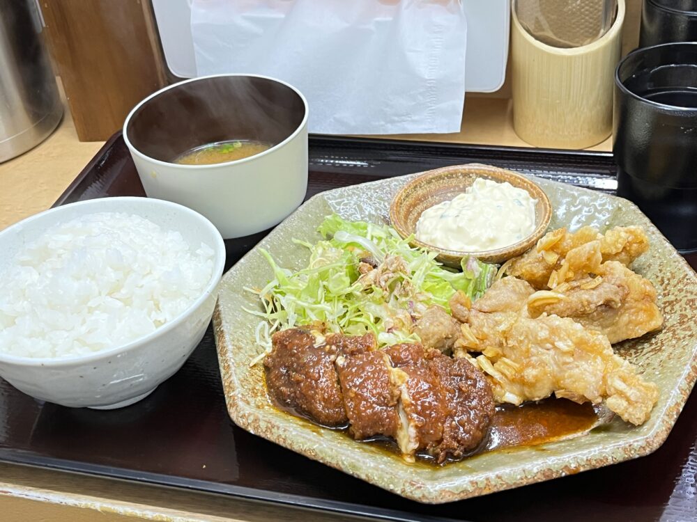 数量限定の「日替わり定食」は920円。「豚とチーズのミルフィーユカツとチキン南蛮」「ヒレカツとチキン南蛮」「白身フライ・エビフライとチキン南蛮」など、チキン南蛮となにかの2~3種類を一緒に食べられるお得感あるメニューになってます。