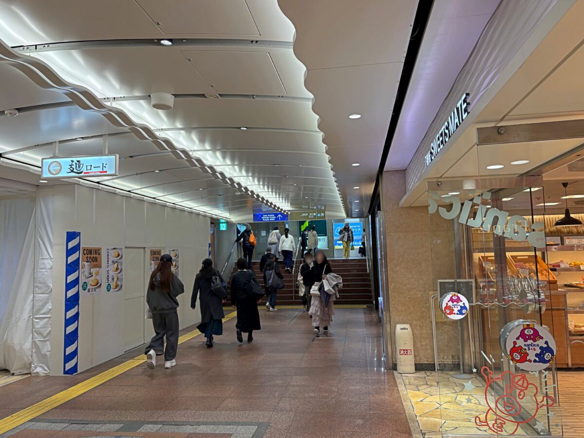 奥に見えている階段の方に進むと、さんプラザやセンター街方面へ行くことができます。