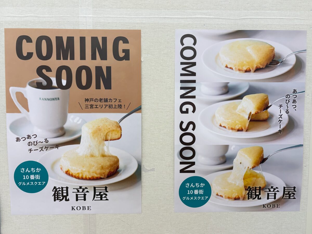 三宮・さんちかにチーズケーキで有名な『観音屋』がオープンするみたいです。