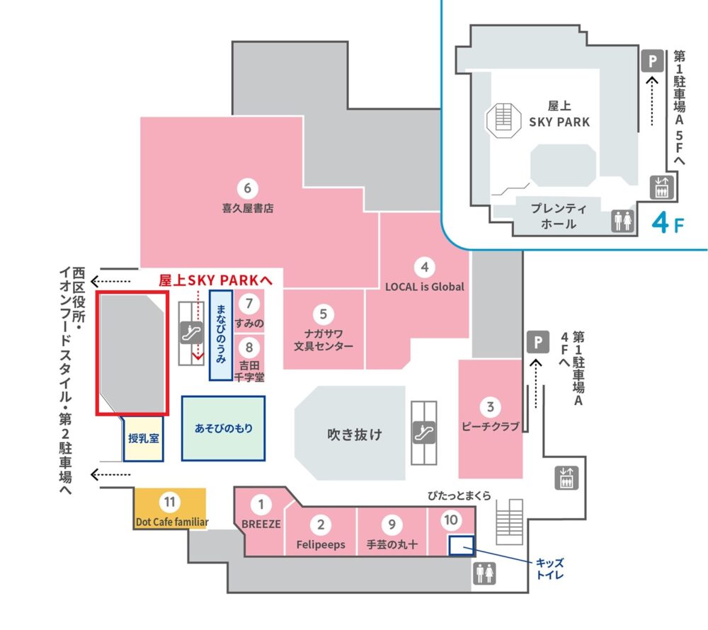 この場所は、無料の広場「あそびのもり」や授乳室・おむつ替えスペースが入った「BABY Station」といった子ども向け設備が揃っているエリア。写真の印刷を待っている間にお子さんを広場で遊ばせておけるので、お店を重宝していた人もいるかもしれませんね。