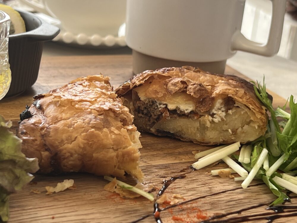 一番人気という「チーズミートパイ(+80円)」は、ひき肉と野菜を秘伝のタレで炒めたものとじゃがいも、クリームチーズが3層になってぎっしり詰まっています。