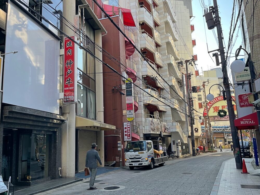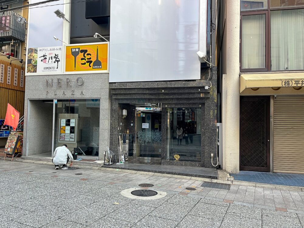 『WAGYUの国』ができるのは、東門街の南側のエリアにある「NERO PLAZA」の1階。お好み焼き屋さんの「花門亭東門街別館」がある建物です。