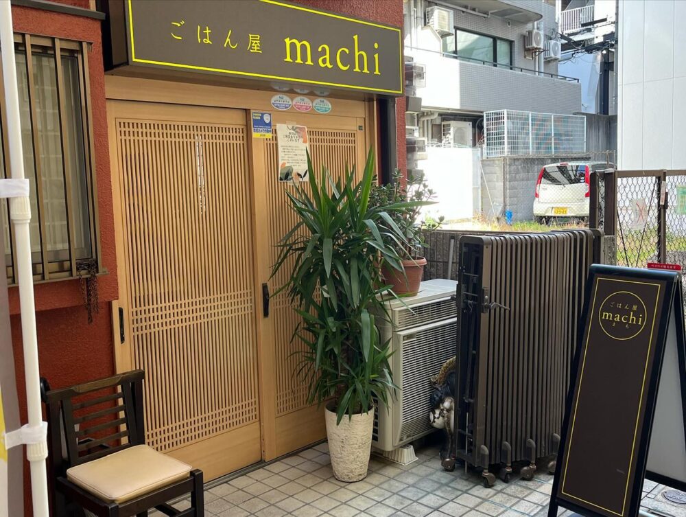 元町駅から徒歩6分、三宮センターサウス通りの路地裏にある『ごはん屋 machi』は、おばんざいを楽しめるお店。茶色の看板が目印です。