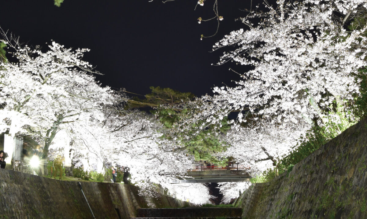 期間中は、阪急「苦楽園口」駅から夙川沿いへと降りたところにある、約400mほどの間に咲く桜がライトアップされます。