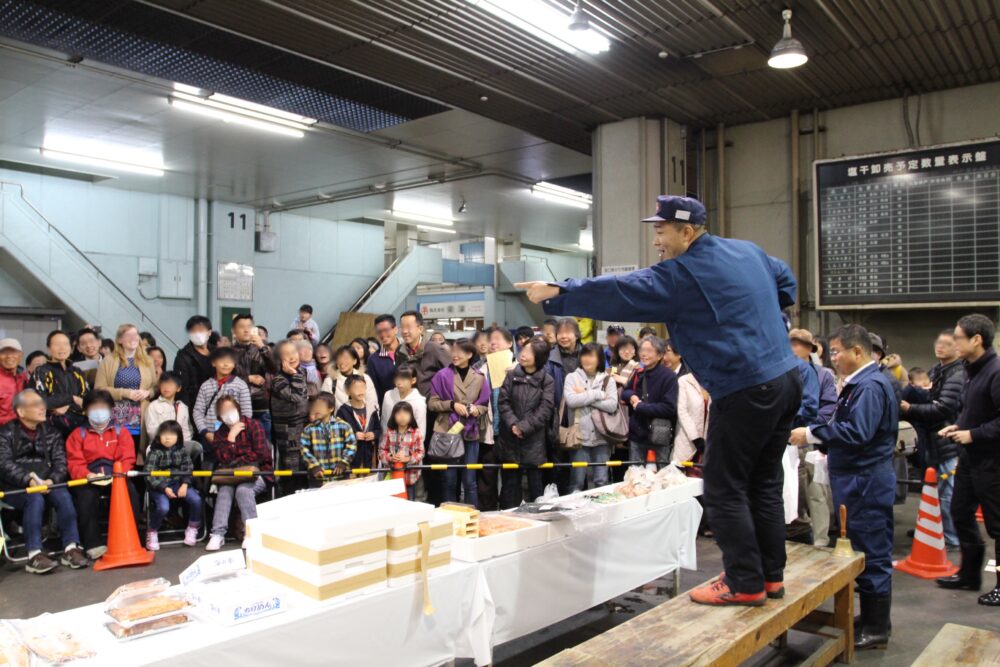 主に事業者向けに卸売りを行う市場なので、普段は一般人が立ち入って買い物することはできませんが、「魚河岸(うおがし)デー」や「市場まつり」など一般向けに公開されるイベントも。模擬せり・マグロの解体・タッチプール・魚のさばき方教室などが楽しめます。