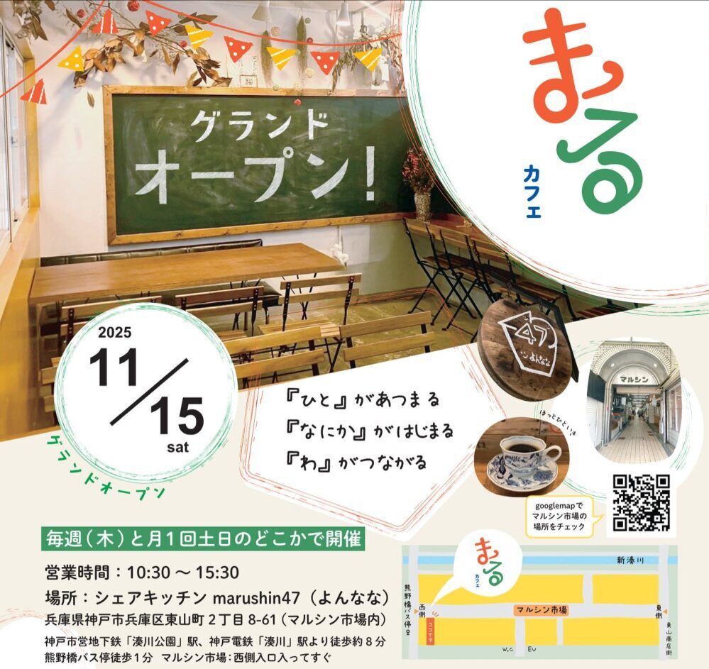 普段は、シェアスペース「marushin47(よんなな)」として日替わり店主のカフェやごはん屋さんが営業したり、料理教室やワークショップが行われている場所です。