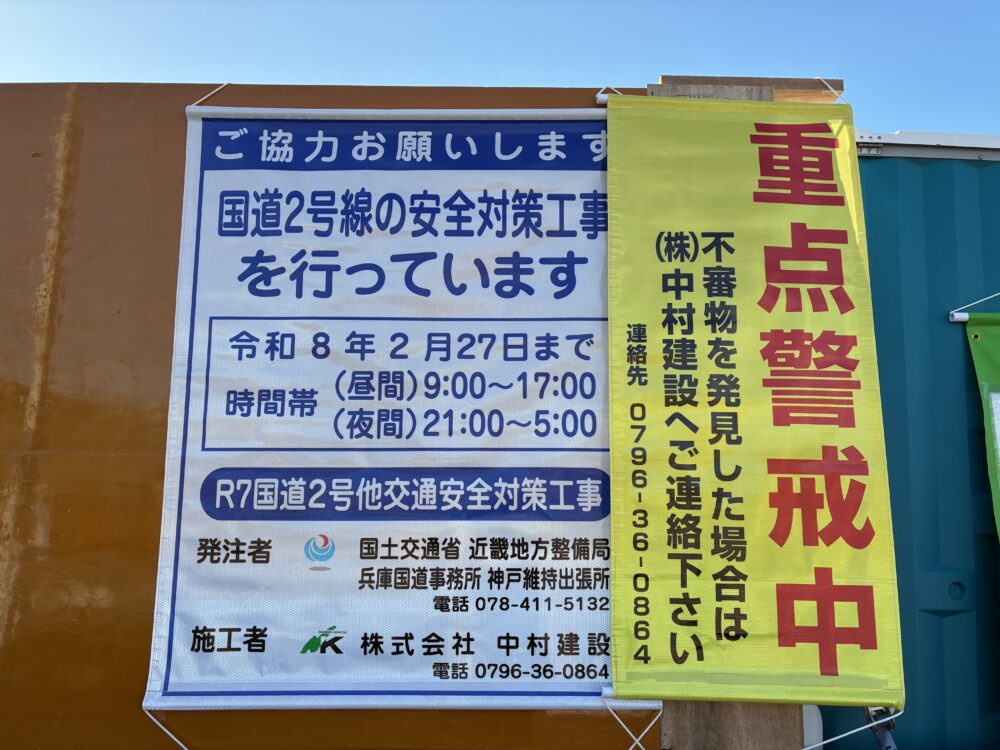 国道2号線の安全対策工事は、昼間・夜間とも行われており、来年2月27日まで続く予定です。