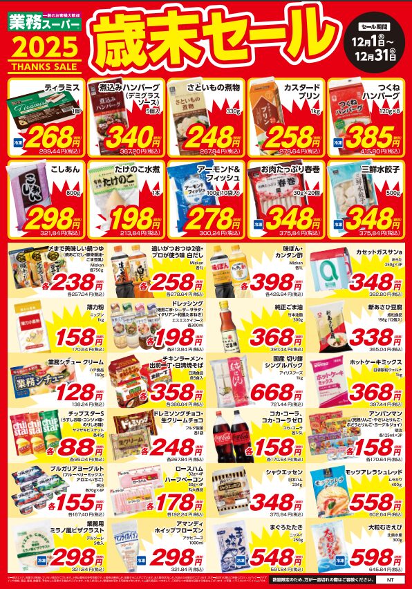 神戸をはじめとする全国の「業務スーパー」で『歳末セール』が実施されてます。出費の多い年末年始の「買い出し」にありがたい1ヶ月限定のセールです。