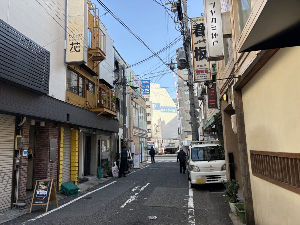 お店ができたのは、JR三ノ宮駅から山側に歩いて4分ほど、フラワードーロから西側の路地に少し入ったところです。