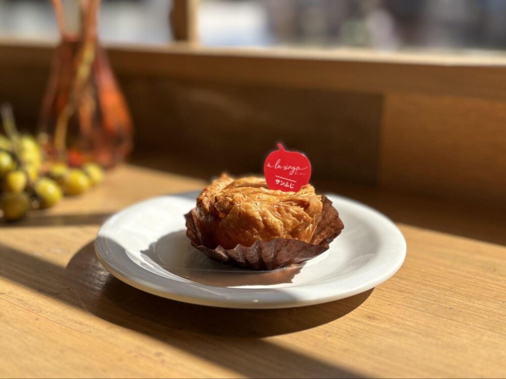 ショーケースに並んでいるスイーツの前には、その商品に使われているりんごの名前と説明が書いてあり、この日はサンふじ。