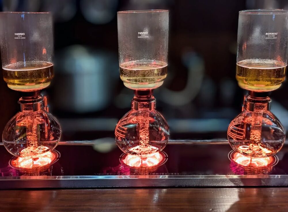 お店では「光サイフォン」でコーヒーを抽出。ハロゲンランプの光を熱源として利用していて、温かい光は目で見ても楽しめます。