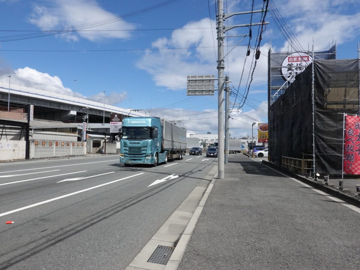 反対を向くとこんな感じ。東へ進むと「カレーハウス CoCo壱番屋」があり、少し進むと「エネオス」なども。