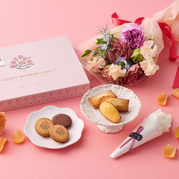 フィナンシェ3個、マドレーヌ3個、ラング・ド・シャ(フードプリント)〈Thank you Mother〉5個、〈チョコレート〉5個、Afternoon Tea LIVING ブーケミニタオル1枚、メッセージカード1枚