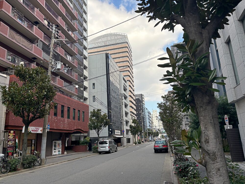 東側を向くと、このような感じ。この先には「神戸三宮ユニオンホテル」があり、さらに進むと「生田川」に着きます。
