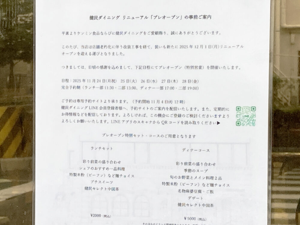 地下鉄・みなと元町駅の海側にある『健民ダイニング』が、数か月の休業を経て再オープンするようです。