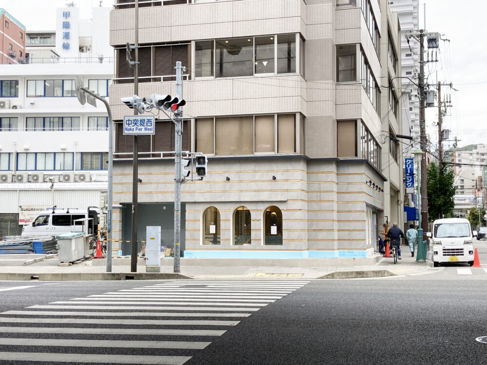 お店の場所は、国道2号線の「中突堤西」の信号の目の前、地下鉄海岸線「みなと元町駅」まで北へ歩いて2分ほどの場所です。