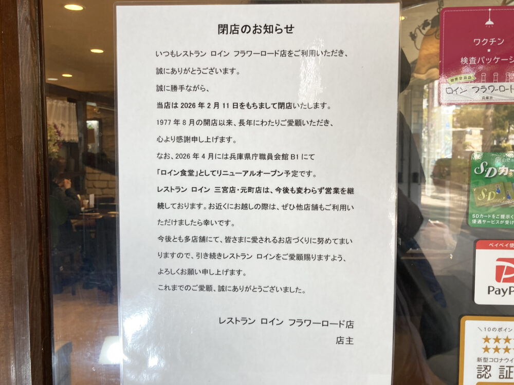 『ロインフラワーロード店』が、2月中旬に閉店してしまうそうです。