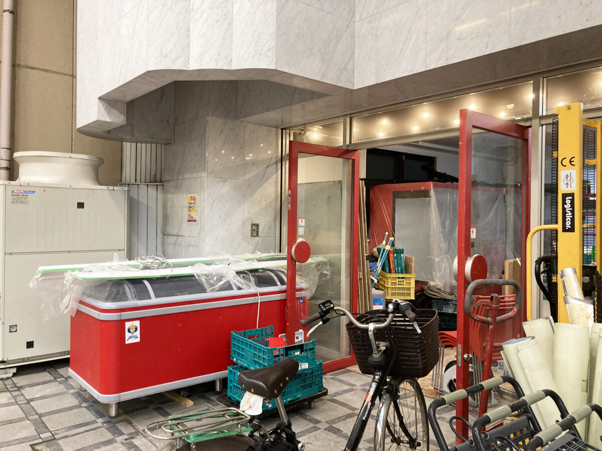 4月中旬、すでに店内には冷蔵用の設備や棚などが運び込まれて、準備が進んでいる状況です。
