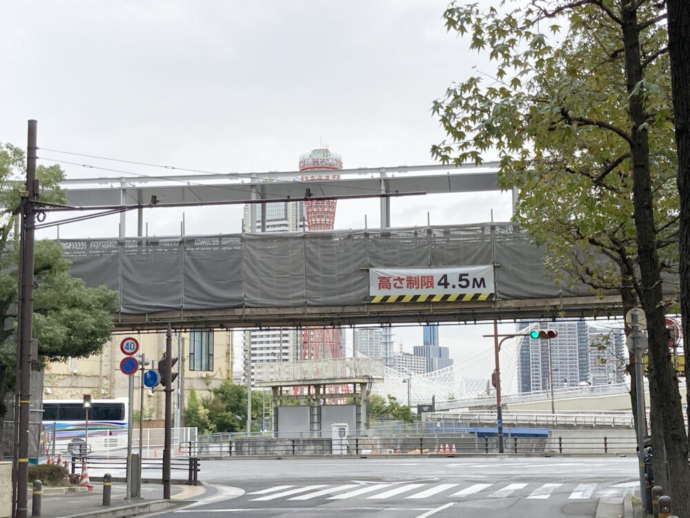歩行者デッキを歩きながらポートタワーの方を向くと、ちょっと高い位置からになるので、いつもと雰囲気が変わって見えるかもしれませんね。