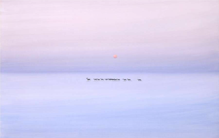 葉祥明《Blue Herd〜蒼き群れ〜》(1980年代後半/油彩画)